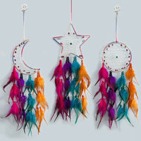 Avec une hauteur de 68 cm et un diamètre de cercle variant de 17 à 20 cm, cet attrape-rêve artisanal moderne est orné de plumes multicolores et de motifs inspirés des festivals mexicains traditionnels.